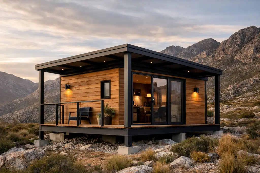 Elevate Pods specialises in compact, durable pod homes designed for mountain and rural environments. Each structure is built on a solid base with mild-steel framing, metal sheeting, and natural wood cladding — combining strength, comfort, and clean architectural lines.