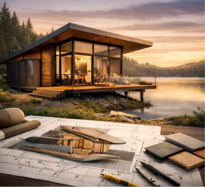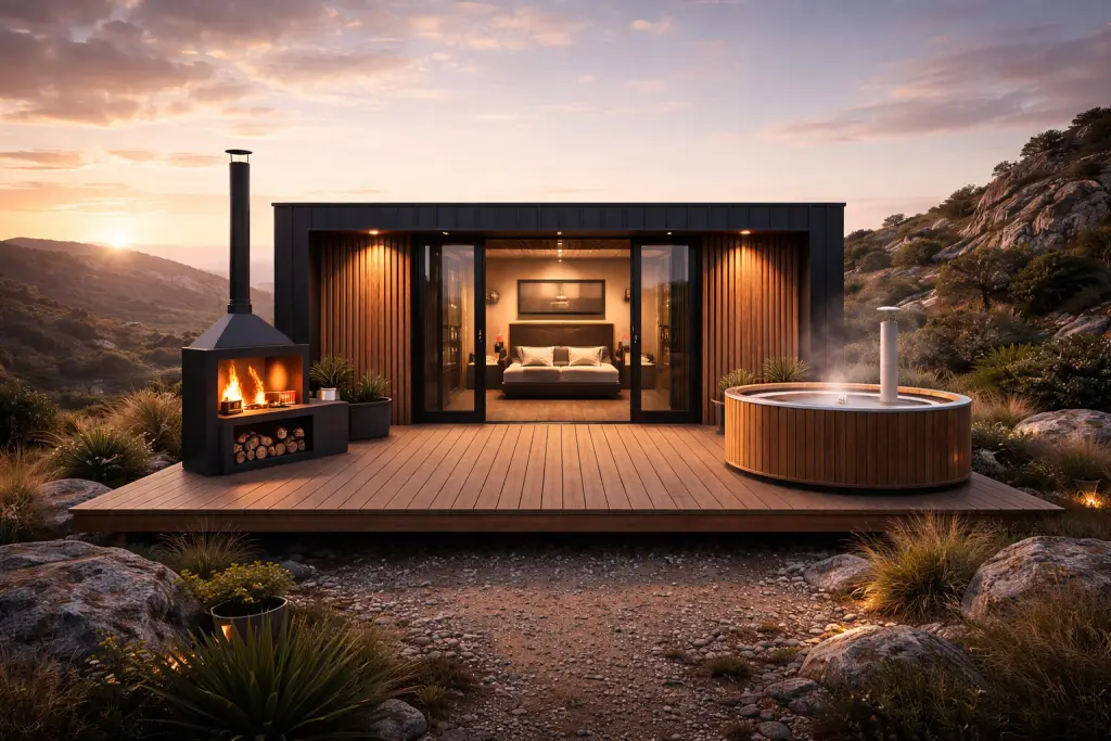 Custom-designed pods for guest accommodation, Airbnb use, or private retreats — balancing comfort, efficiency, and visual appeal.