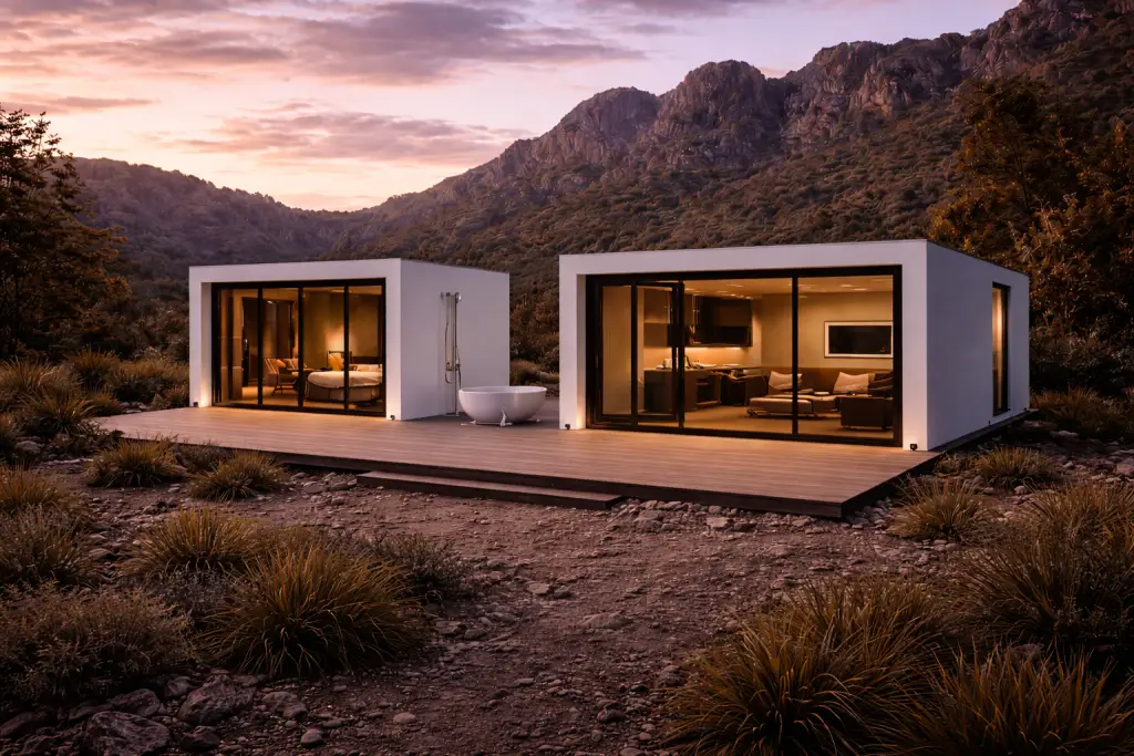 Our flagship luxury pod concept featuring panoramic glazing, refined materials, and open living spaces designed to capture surrounding views.